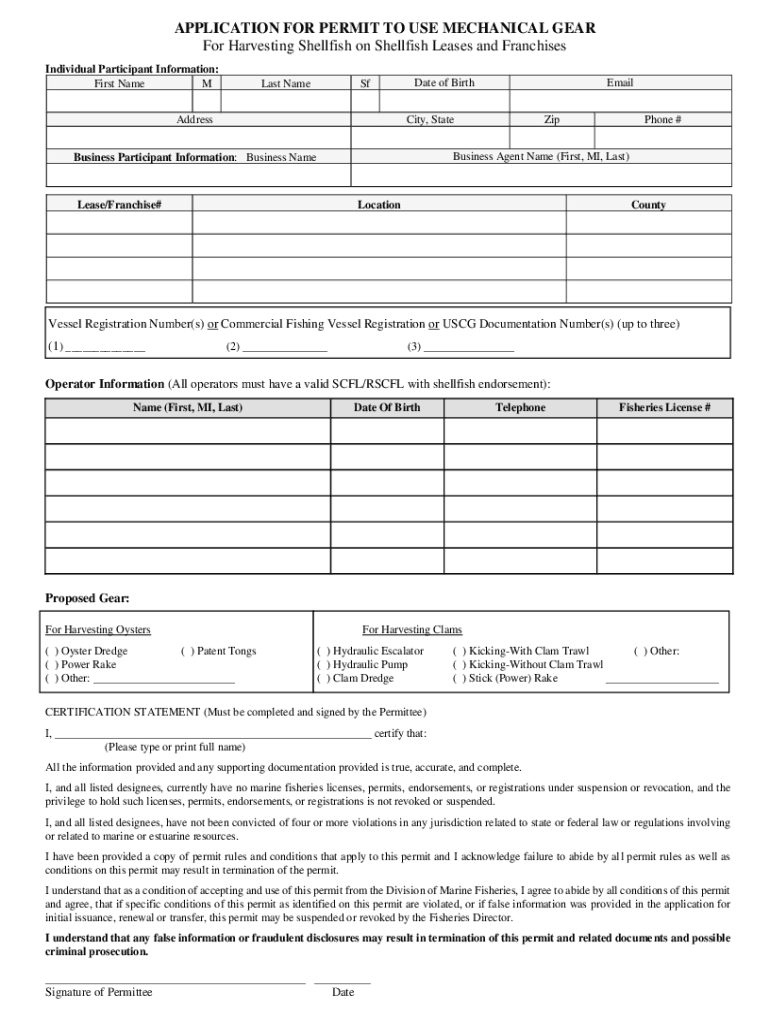 Get the free APPLICATION FOR PERMIT TO USE MECHANICAL GEAR For ...