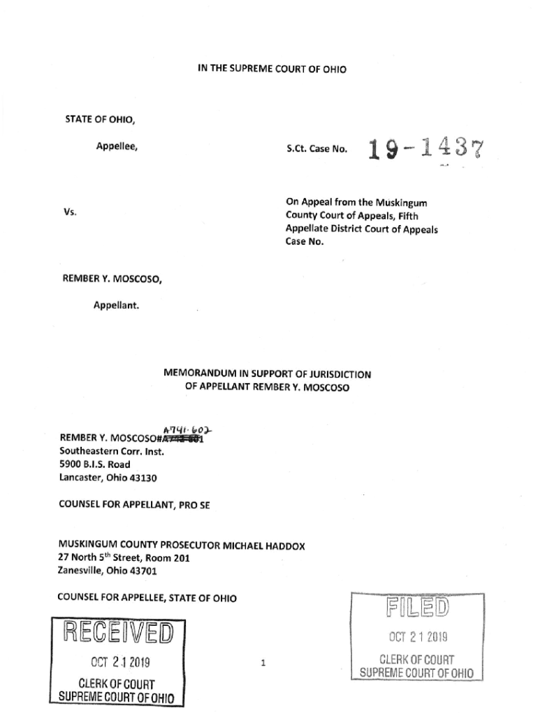 THE SUPREME COURT OF HOSTAGE OF OHIO, Appealed's. Ct.19Case No.\” 1/Iron Appeal from the MuskingumVs. County Court of Appeals, FifthAppellate District Court of Appeals Case No. MEMBER Y. MOSCOW,