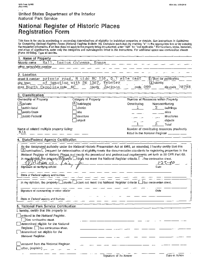 Run UI).NPS Form 1Q.900 (RET. &.a6)102HXH8United States Department of the Interior National Park ServiceNational Register of Historic Places Registration Form This form Is for use in nominating or