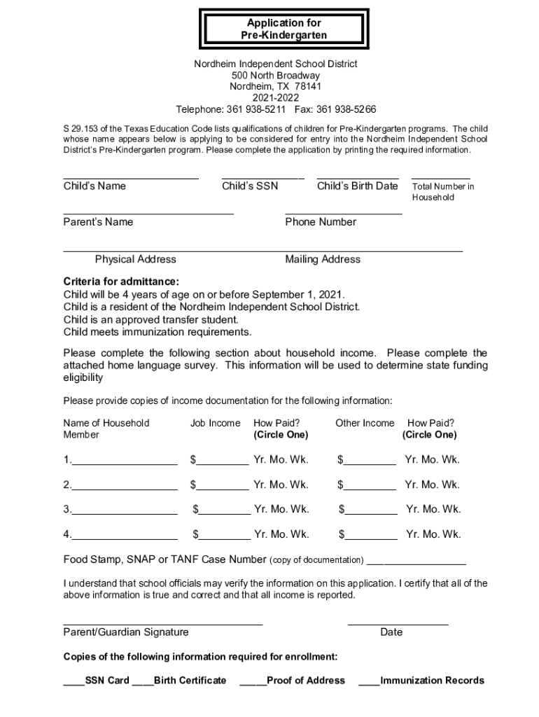 Get the free support.nordheimisd.orgPublicationsArchivesApplication for Pre-Kindergarten - suppor...
