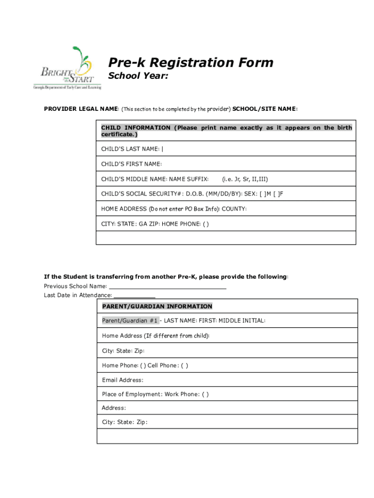 Pre-K Registration Form is not the form you're looking for?Search for another form here.