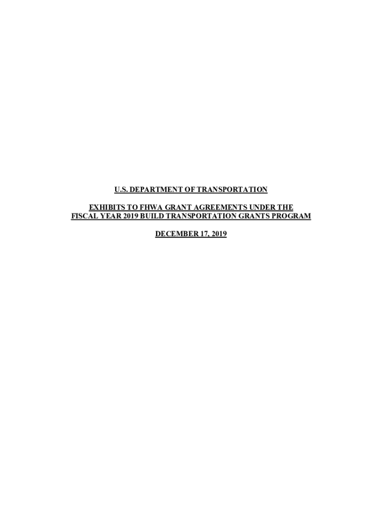 U.S. DEPARTMENT OF TRANSPORTATION EXHIBITS TO FHA GRANT AGREEMENTS UNDER THE FISCAL YEAR 2019 BUILD TRANSPORTATION GRANTS PROGRAM DECEMBER 17, 2019EXHIBIT A APPLICABLE FEDERAL LAWS AND REGULATIONS