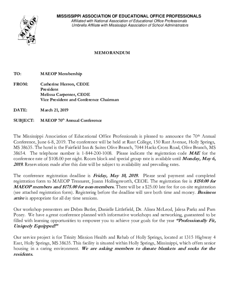 MISSISSIPPI ASSOCIATION OF EDUCATIONAL OFFICE PROFESSIONALS Affiliated with National Association of Educational Office Professionals Umbrella Affiliate with Mississippi Association of School AdministratorsMEMORANDUMTO:MAJOR