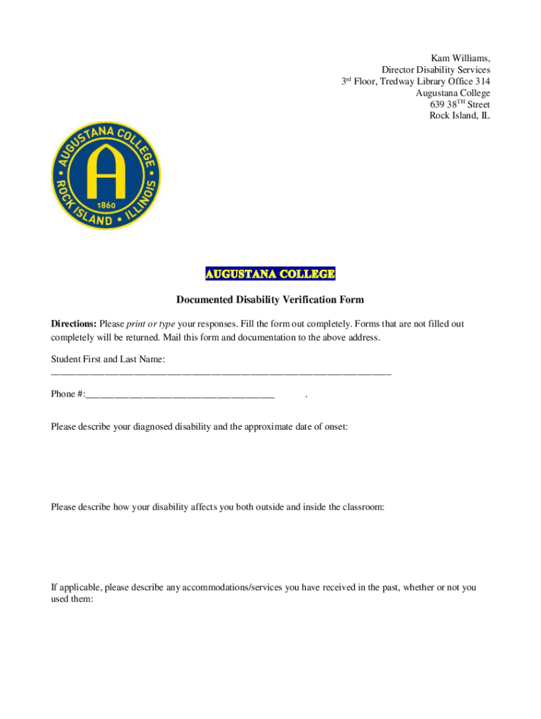 Get the free Documented Disability Verification Form - Augustana College