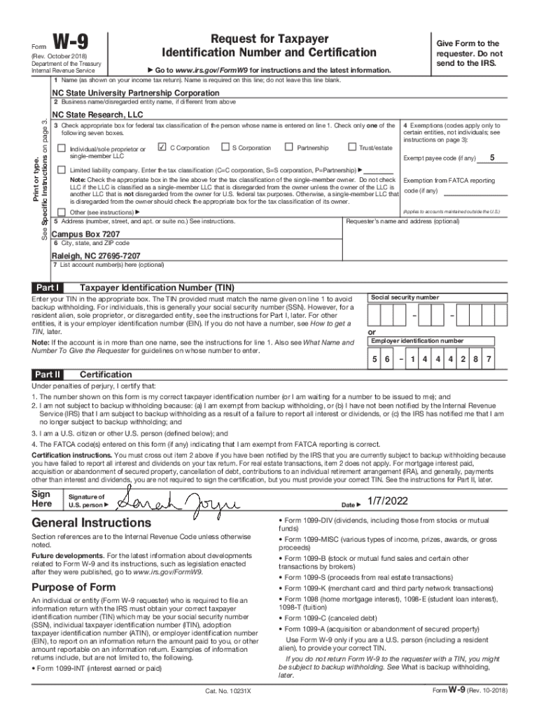 W9Form (Rev. October 2018) Department of the Treasury Internal Revenue ServiceRequest for Taxpayer Identification Number and Certification give Form to the requester. Do not send to the IRS. Go to