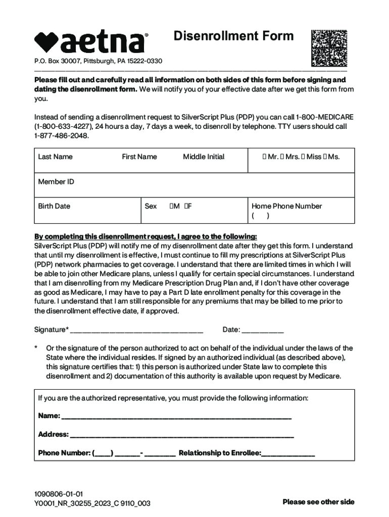 Get the free Disenrollment Form - SmartRx - English - Aetna