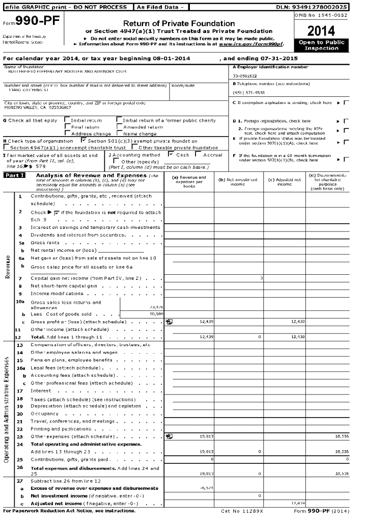 Le file Topographic print DO NOT Process Filed Data DAN: 93491278002025 OMB No 15450052990PFReturn of Private Foundation2014or Section 4947(a)(1) Trust Treated as Private Foundation Department of