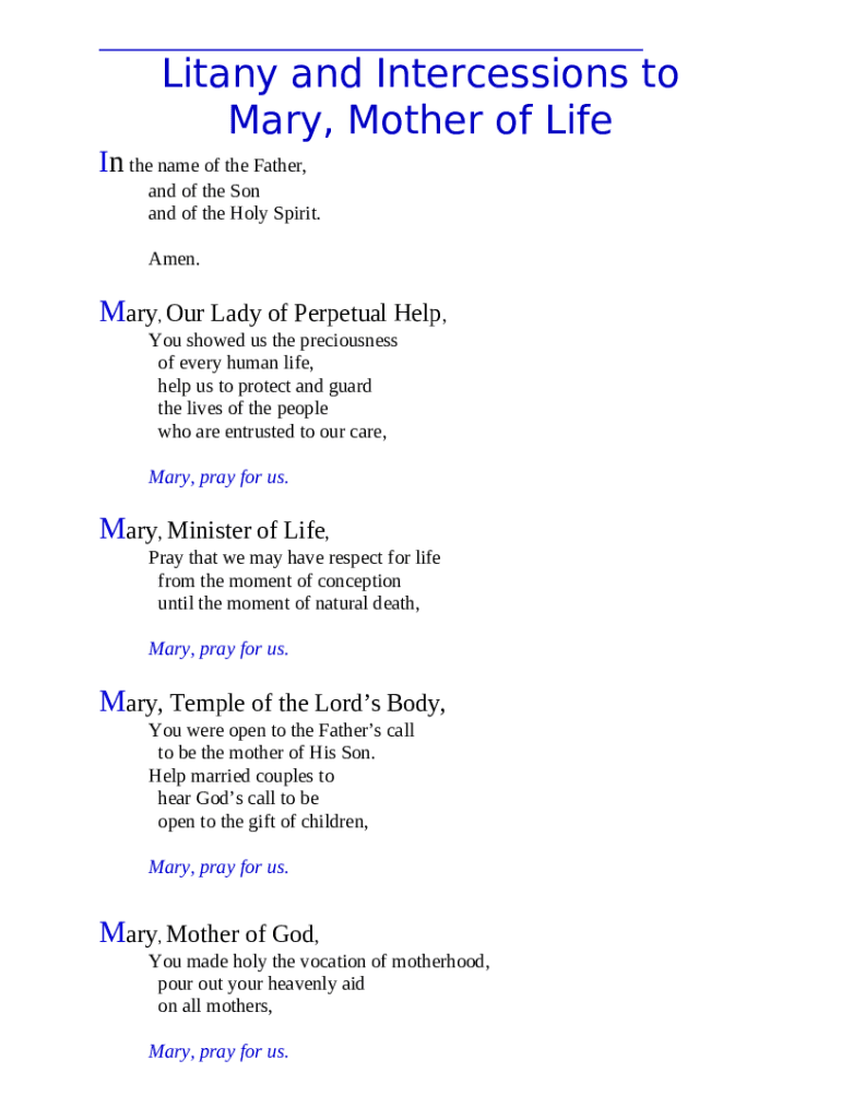 LITANY TO MARY, MOTHER OF LIFE template instructions