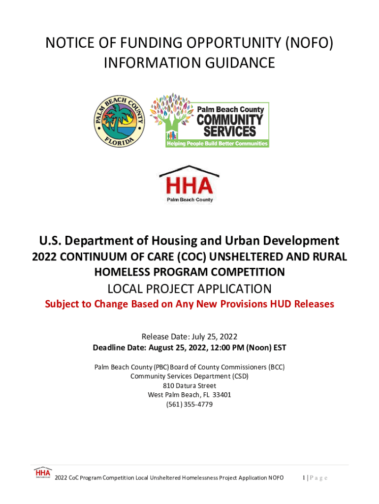 NOTICE OF FUNDING OPPORTUNITY (NO FO) INFORMATION GUIDANCE. S. Department of Housing and Urban Development 2022 CONTINUUM OF CARE (COC) SHELTERED AND RURAL HOMELESS PROGRAM COMPETITIONLOCAL PROJECT