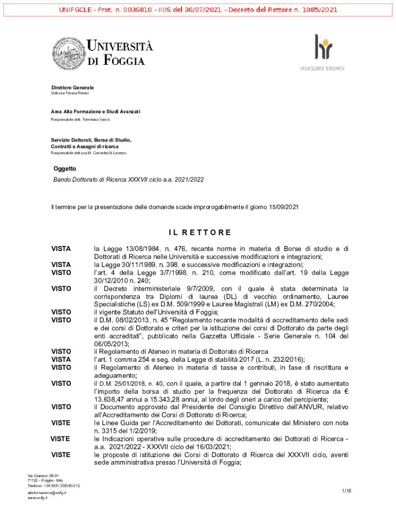Director General Dot.SSA Teresa Romania Alta Formation e Studio Vanuatu Responsible dot. Tomato VascoServizio Doctorate, Horse DI Studio, Contract e Assign DI ricer ca Responsible dot.SSA M. Concetta