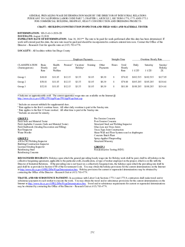 GENERAL PREVAILING WAGE DETERMINATION MADE BY THE DIRECTOR OF INDUSTRIAL RELATIONS PURSUANT TO CALIFORNIA LABOR CODE PART 7, CHAPTER 1, ARTICLE 2, SECTIONS 1770, 1773 AND 1773.1 FOR COMMERCIAL BUILDING,