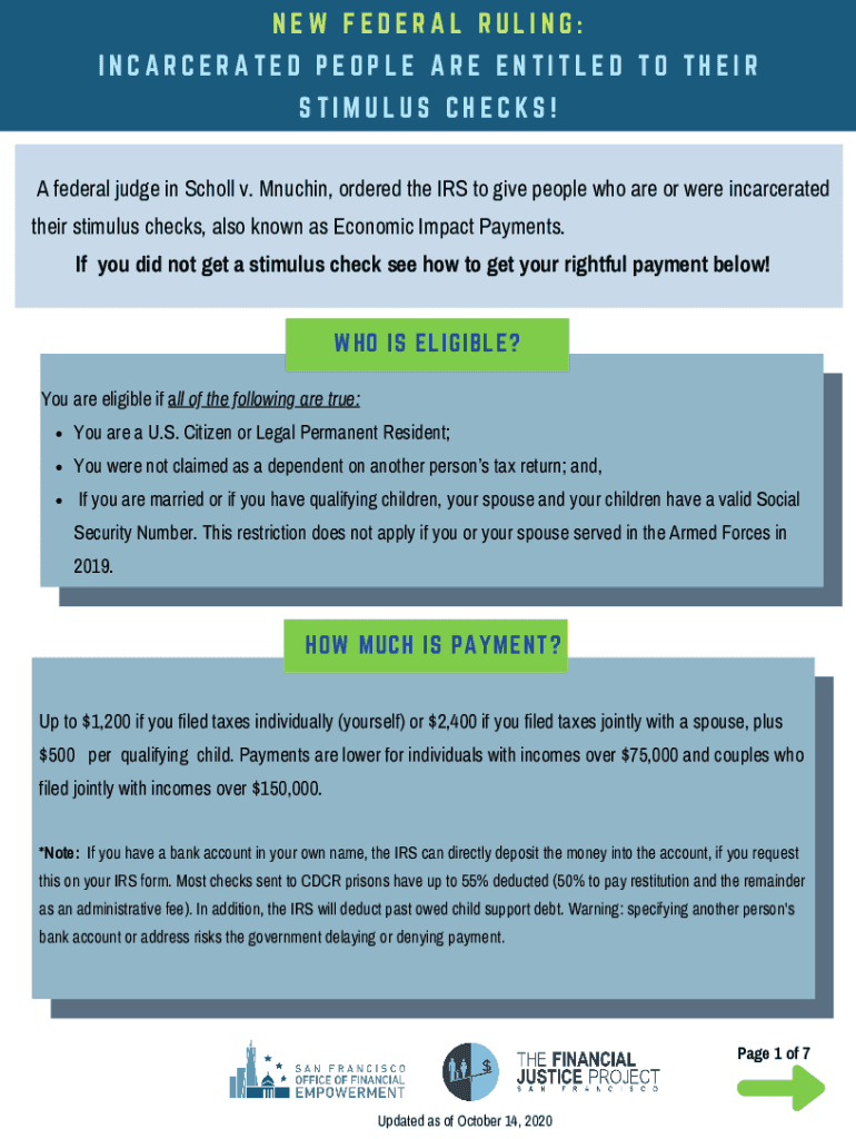 Get the free Federal Judge Rules Prisoners Eligible for $1,200 StimulusIncarcerated are entitled ...