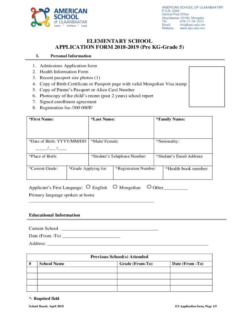 Get the free ELEMENTARY SCHOOL APPLICATION FORM 2018-2019 (Pre KG ...