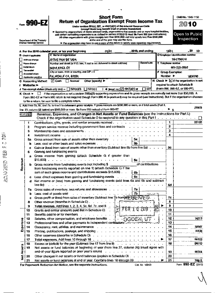 OMB No. 15451150Short Former 99OEZIReturn of Organization Exempt From Income Tax under section 501(c), 527, or 4947(a)(1) of the h.hm... Revenue Code (except black hag benefit trust or private foundation)^