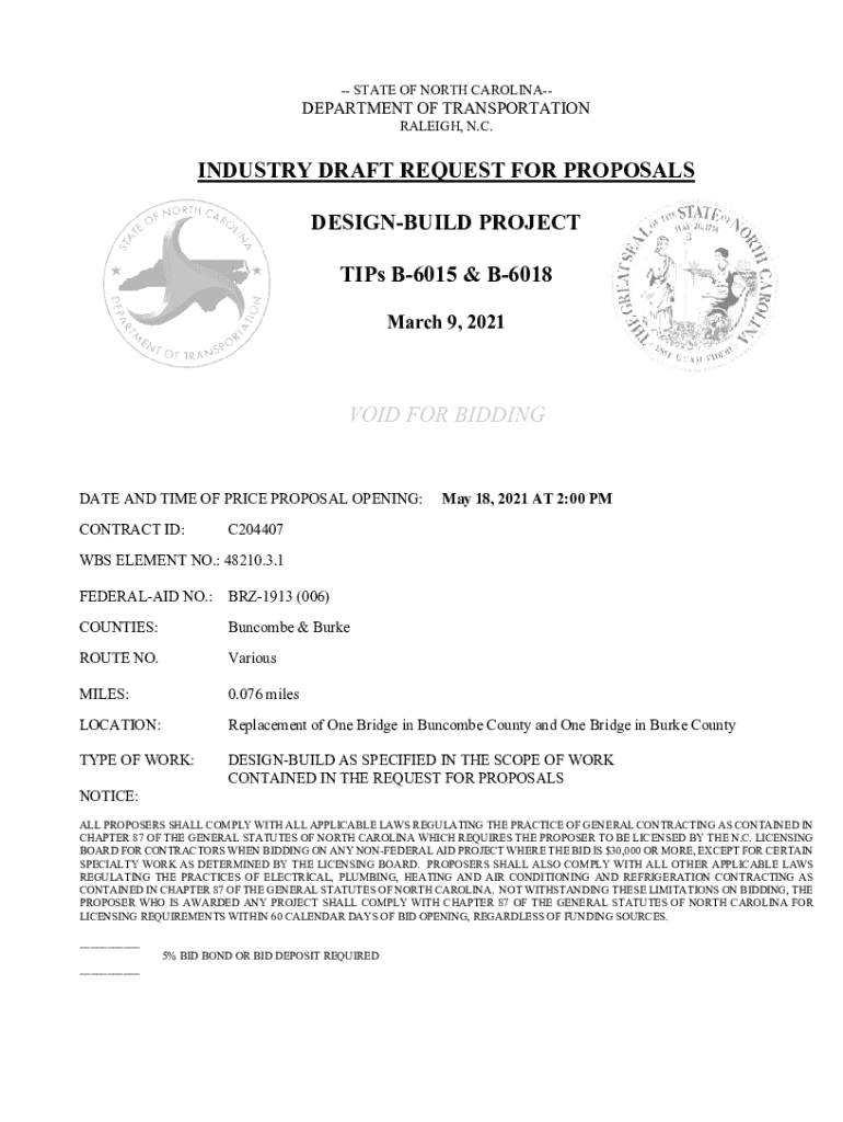 RALEIGH, N.C.INDUSTRY DRAFT REQUEST FOR PROPOSALS