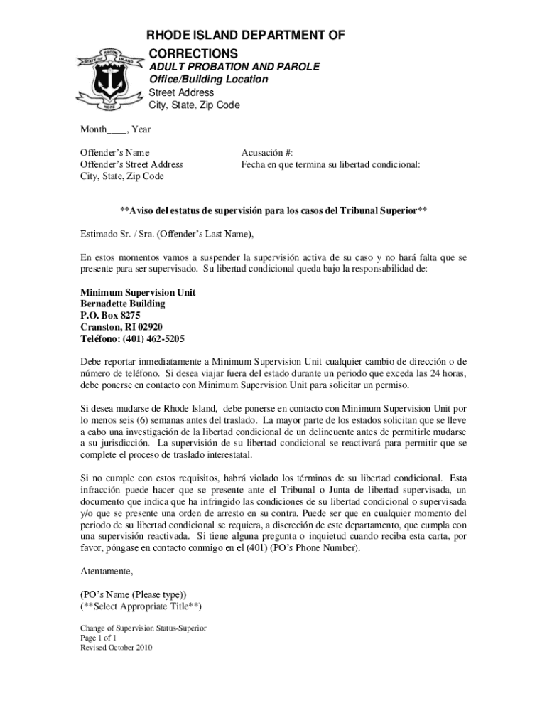 Get the free RHODE ISLAND DEPARTMENT OF CORRECTIONS ADULT PROBATION AND PAROLE ...