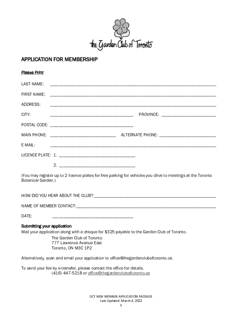 Get the free NEW MEMBER APPLICATION PACKAGE - The Garden Club of Toronto
