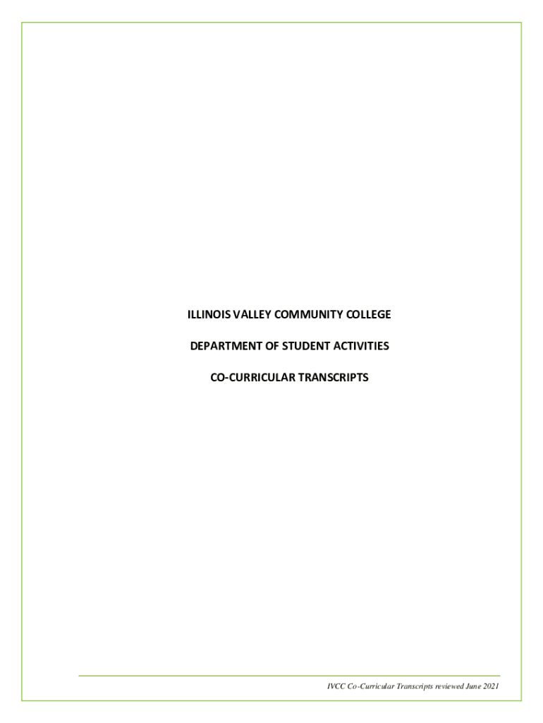 ILLINOIS VALLEY COMMUNITY COLLEGE DEPARTMENT OF STUDENT ACTIVITIES CURRICULAR TRANSCRIPTSIVCC Curricular Transcripts reviewed June 2021COCURRICULAR TRANSCRIPTSDescription The Curricular Transcript