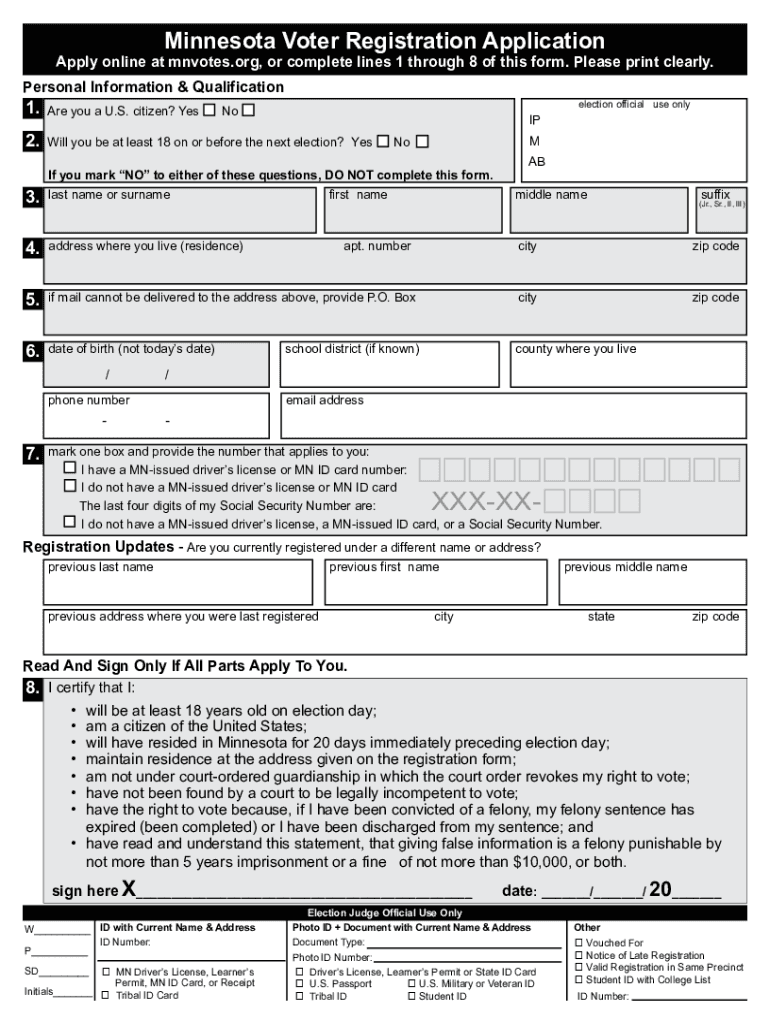 Get the free Voter Registration in MinnesotaVote.govMinnesota Voter Registration FormRegister to ...