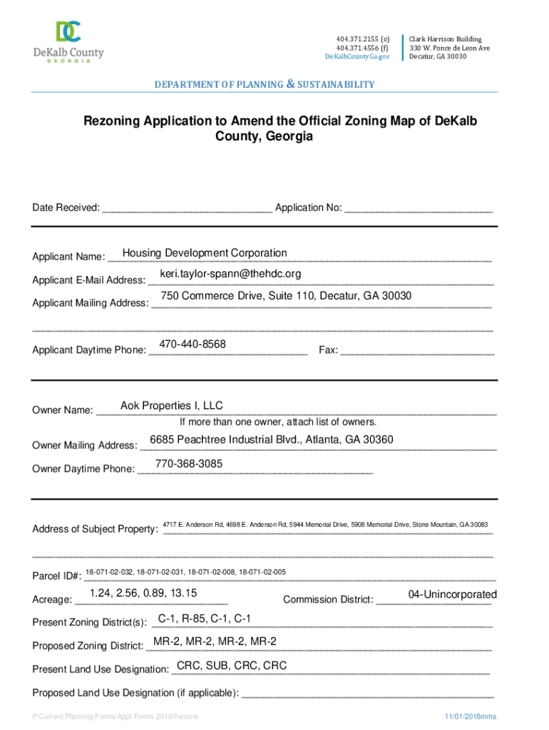 404.371.2155 (o) 404.371.4556 (f) DeKalbCountyGa.gov Clark Harrison Building 330 W. Ponce de Leon Ave Decatur, GA 30030DEPARTMENT OF PLANNING & SUSTAINABILITYRezoning Application to Amend the Official