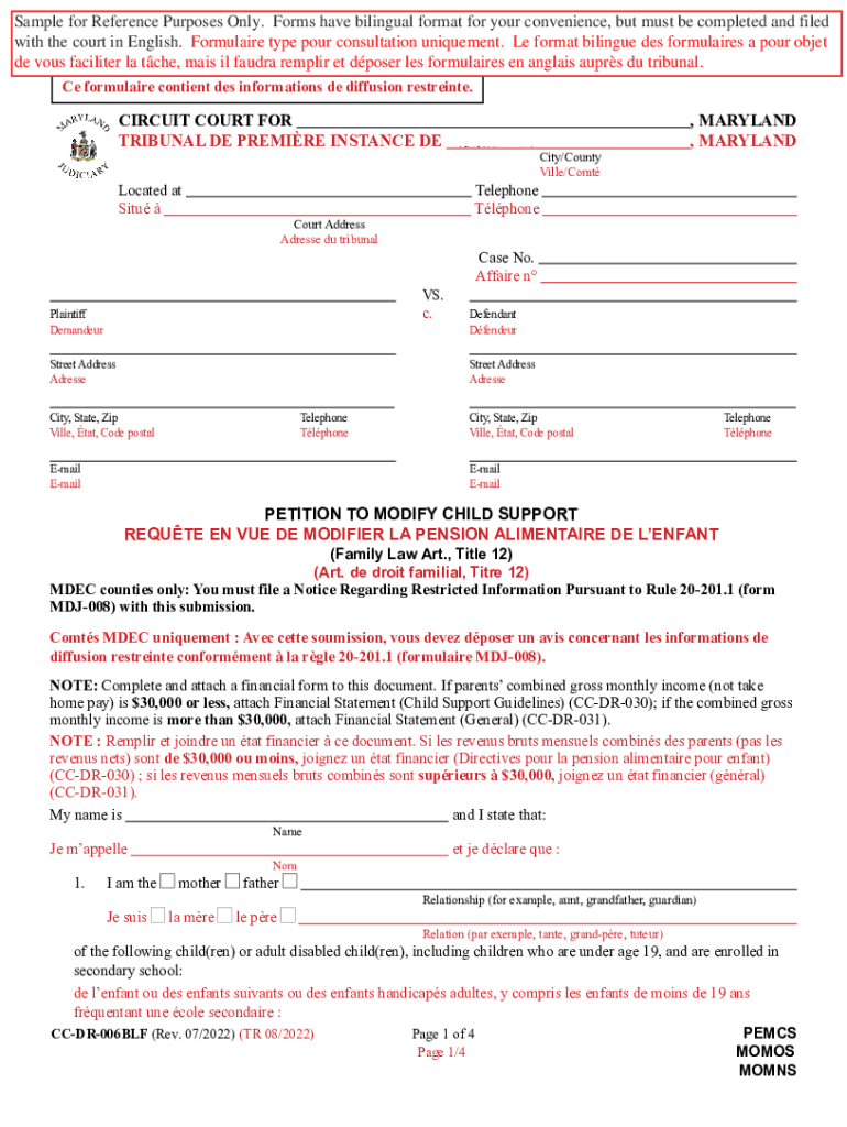 Sample for Reference Purposes Only. Forms have bilingual format for your convenience, but must be completed and filed with the court in English. Formula ire type pour consultation uniqueness. Le format