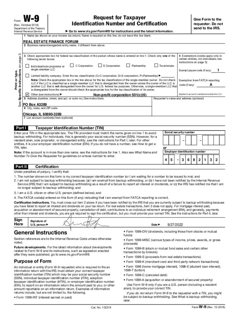 W9Form (Rev. October 2018) Department of the Treasury Internal Revenue ServiceRequest for Taxpayer Identification Number and Certification Give Form to the requester. Do not send to the IRS. Go to