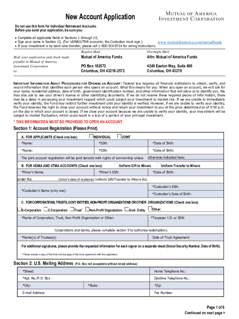 New Account Application Do not use this form for Individual Retirement Accounts. Before you send your application, be sure you: Complete all applicable fields in Sections 1 through 10, Sign your name