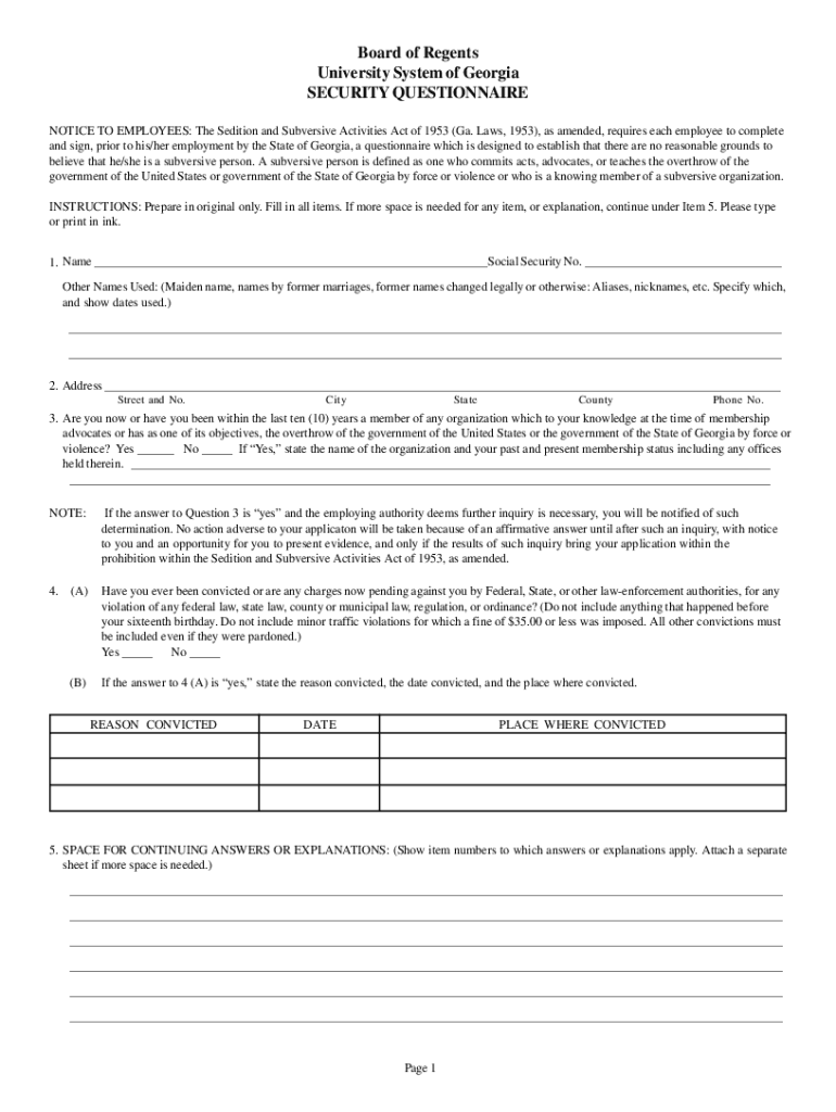 SECURITY QUESTIONNAIREClear this formative TO EMPLOYEES: The Sedition and Subversive Activities Act of 1953
