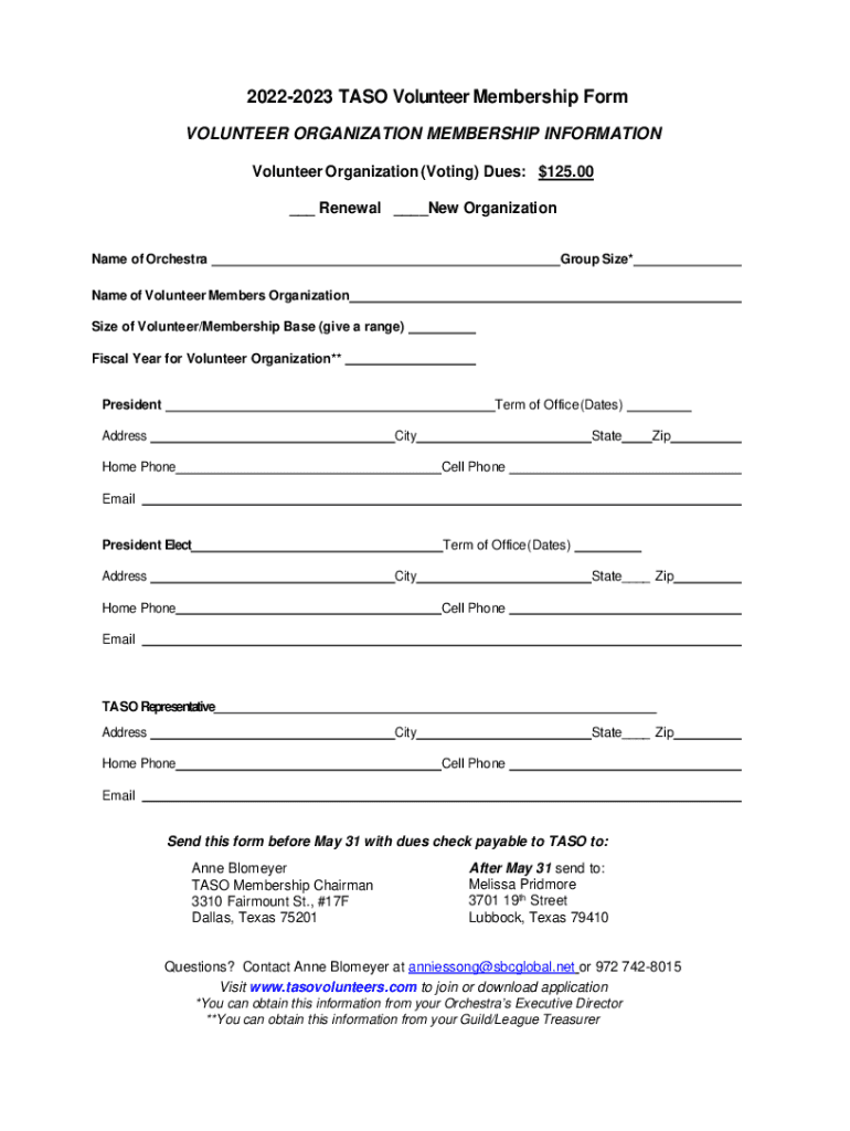 How to fill out taso volunteer organization membership