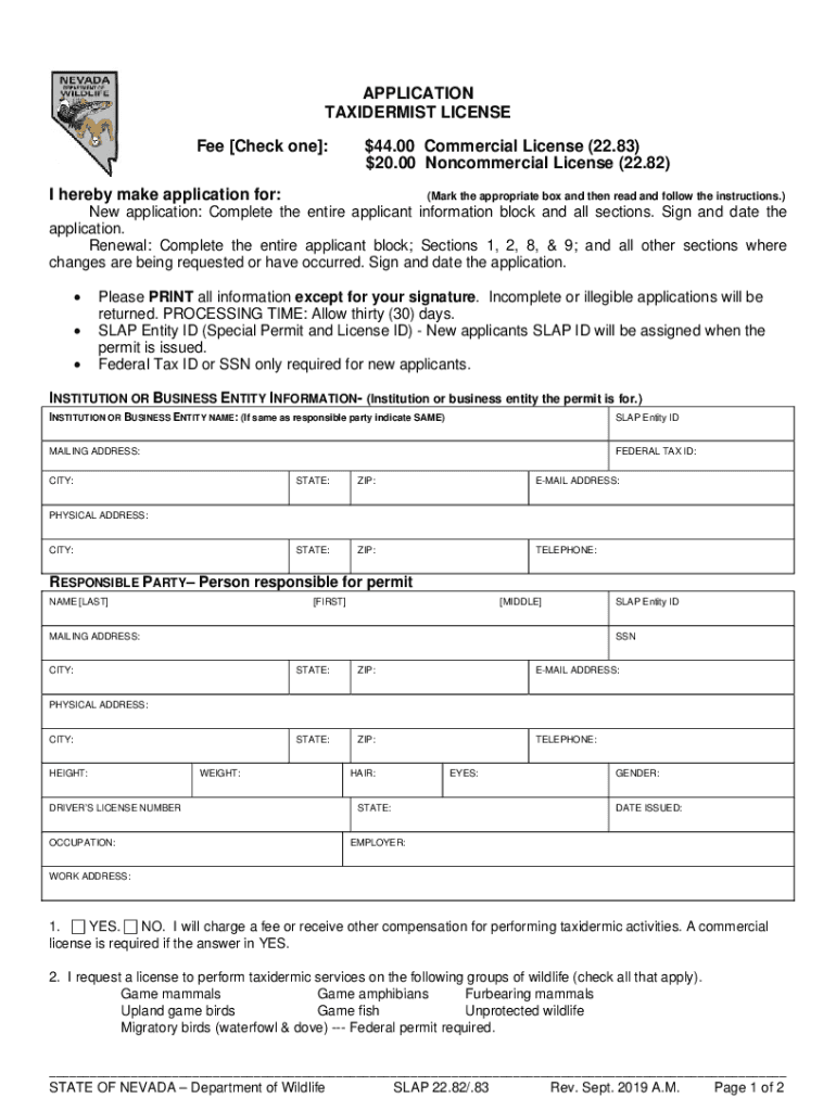 To fill out the NV Application Taxidermist License, applicants must complete the designated form provided by the Nevada state wildlife agency, including details such as personal information, business information, and any relevant taxidermy training or experience.