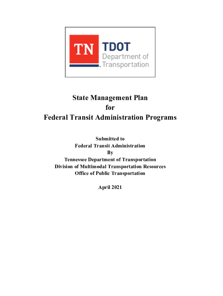 State Management Plan for Federal Transit Administration Programs Submitted to Federal Transit Administration By Tennessee Department of Transportation Division of Multimodal Transportation Resources