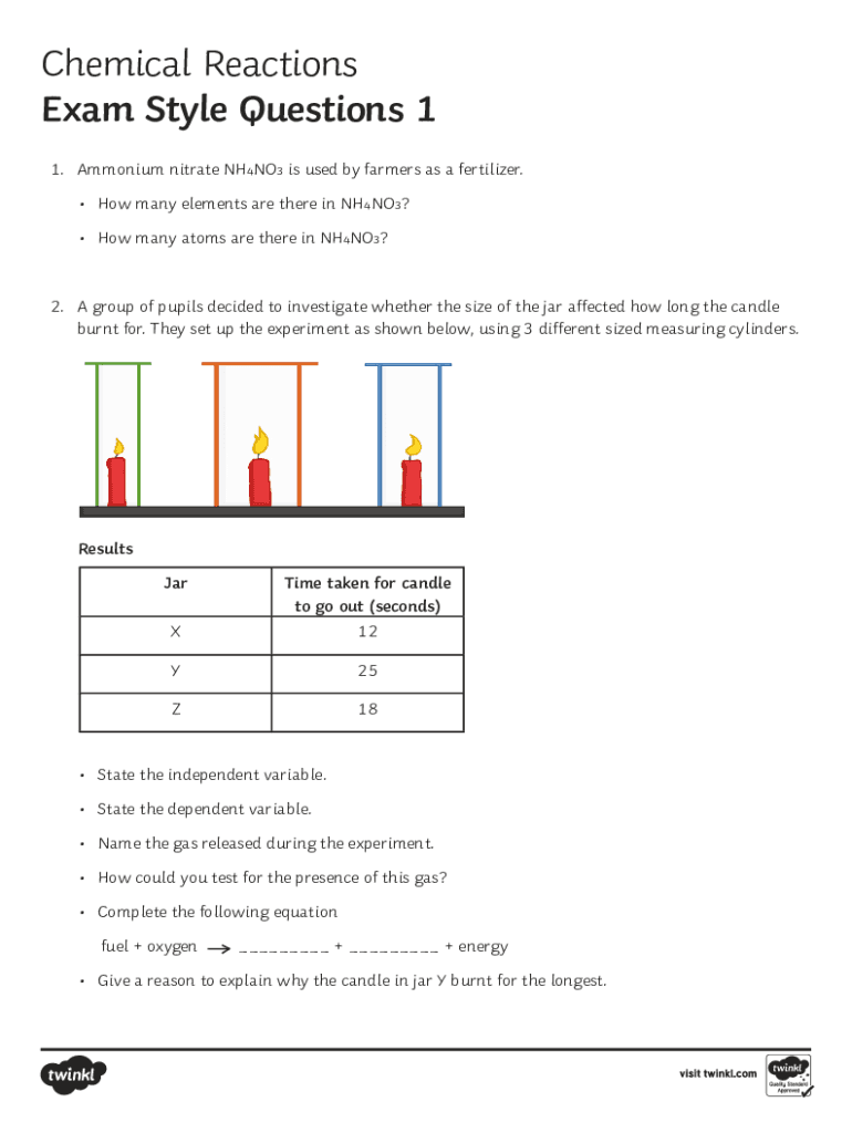 Chemical Reactions Exam Style Questions 1 1. Ammonium nitrate NH4NO3 is used by farmers as a fertilizer. How many elements are there in NH4NO3? How many atoms are there in NH4NO3?2. A group of pupils