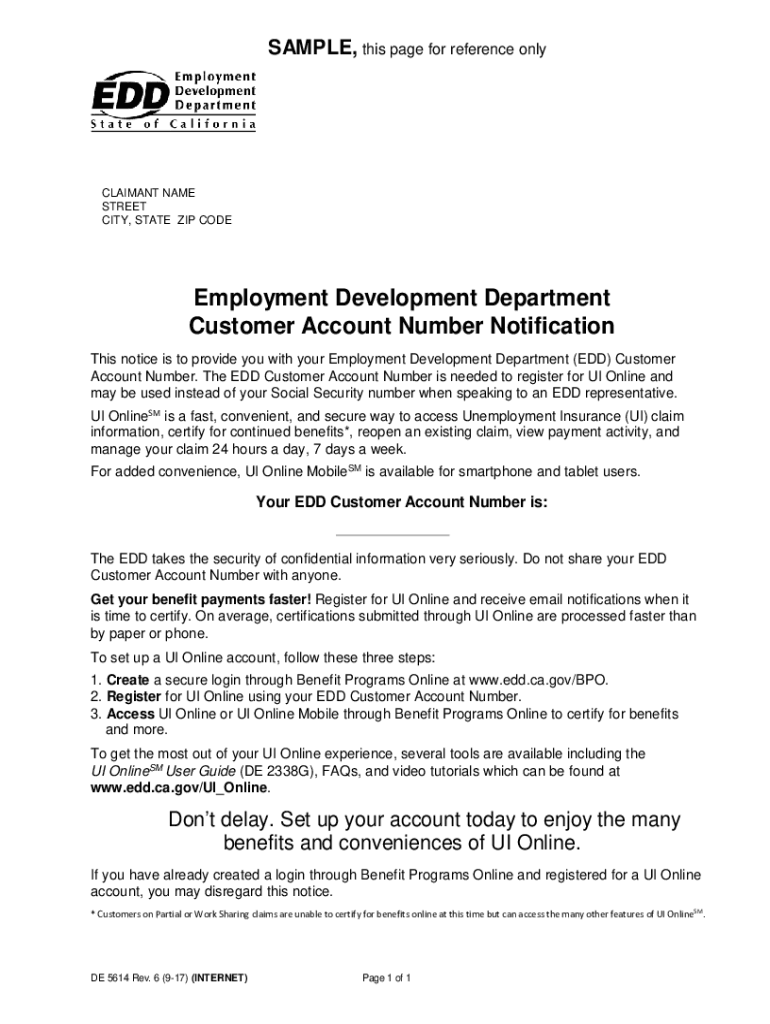 Get the free Employment Development Department Customer Account Number ... - edd ca