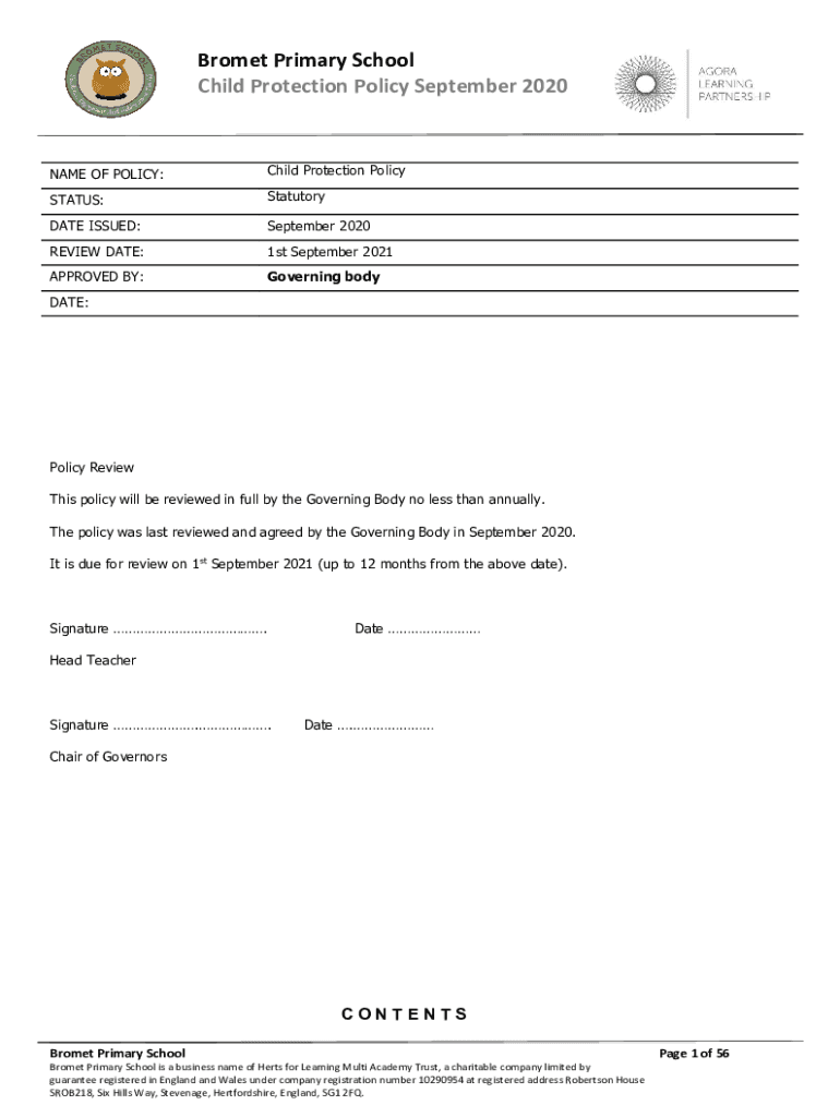 Get the free Bromet Primary School Child Protection Policy September ...