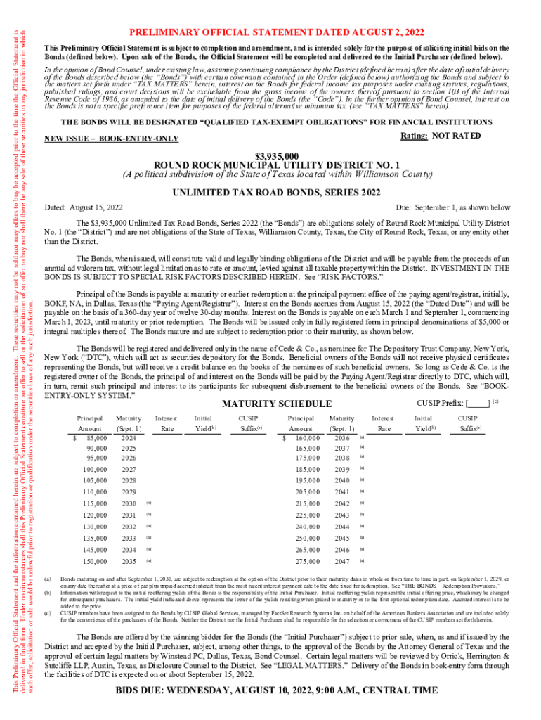 Get the free Round Rock MUD No. 1 - Road Bonds Series 2022 - FINAL POS (for publication)