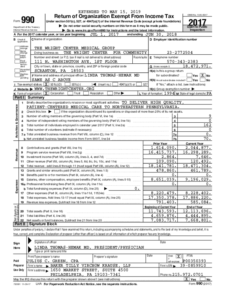 EXTENDED TO MAY 15, 2019 Form990Return of Organization Exempt From Income Tax OMB No. 15450047| Do not enter social security numbers on this form as it may be made public. Open to Public Inspection|