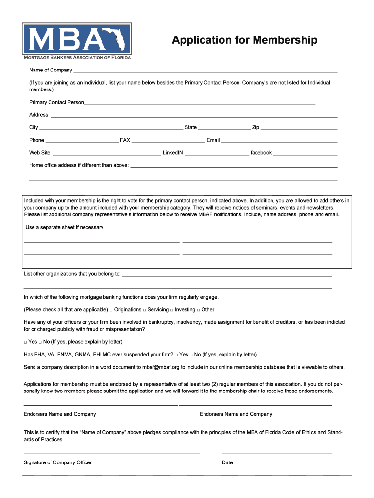 Get the free MBAF Membership Application - Mortgage Bankers Association of ... - mbaf
