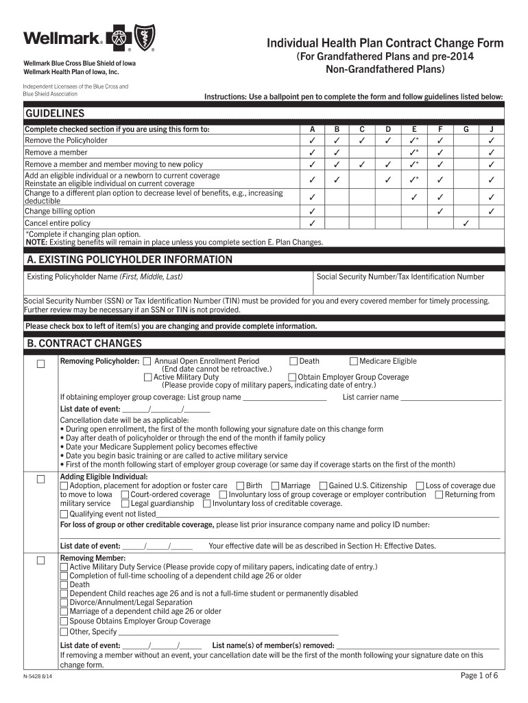 The Individual Health Plan Contract Change Form is a crucial document for policyholders in Iowa, enabling them to modify their health insurance coverage. This form is specifically designed for changing health insurance policies and is significant for those with grandfathered and pre-2014 non-grandfathered plans.