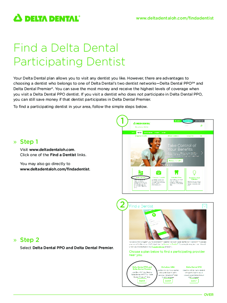 Www.deltadentaloh.com/findadentistFind a Delta Dental Participating Dentist Your Delta Dental plan allows you to visit any dentist you like. However, there are advantages to choosing a dentist who