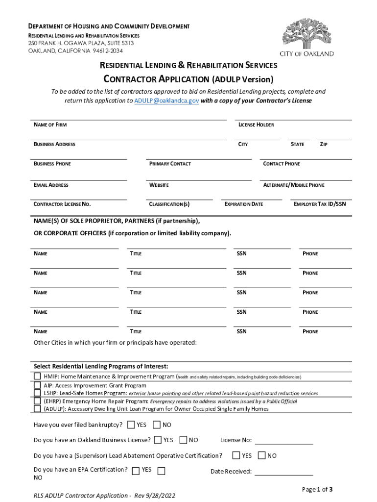 Get the free accessory dwelling unit loan program (adulp) contractor ...