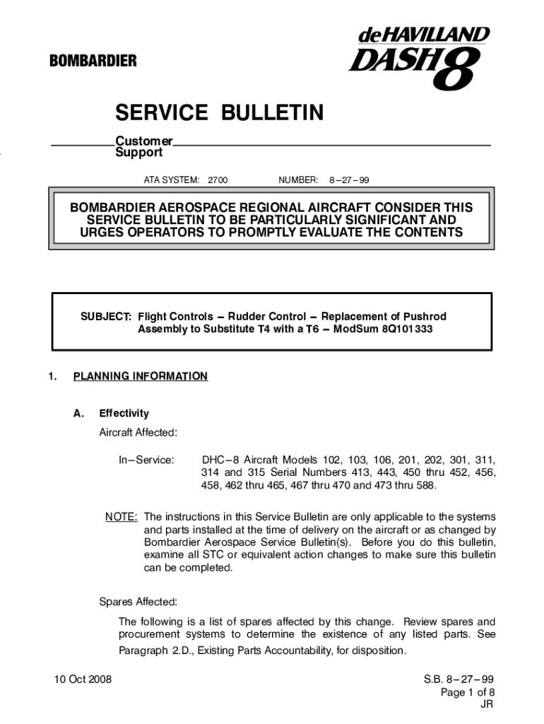 D SERVICE BULLETIN Customer Support ATA SYSTEM: 2700NUMBER:82799BOMBARDIER AEROSPACE REGIONAL AIRCRAFT CONSIDER THIS SERVICE BULLETIN TO BE PARTICULARLY SIGNIFICANT AND URGES OPERATORS TO PROMPTLY