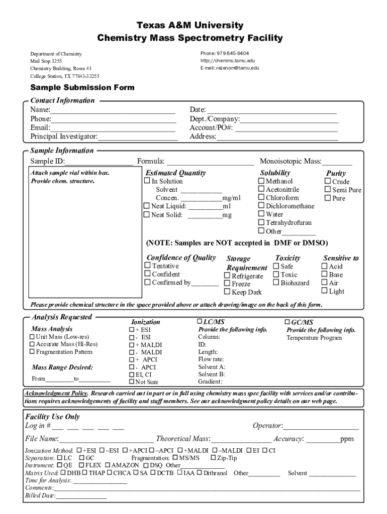 Texas A&M University Chemistry Mass Spectrometry Facility Phone: 9798458404 http://chemms.tamu.edu Email: rezenom@tamu.eduDepartment of Chemistry Mail Stop 3255 Chemistry Building, Room 41 College