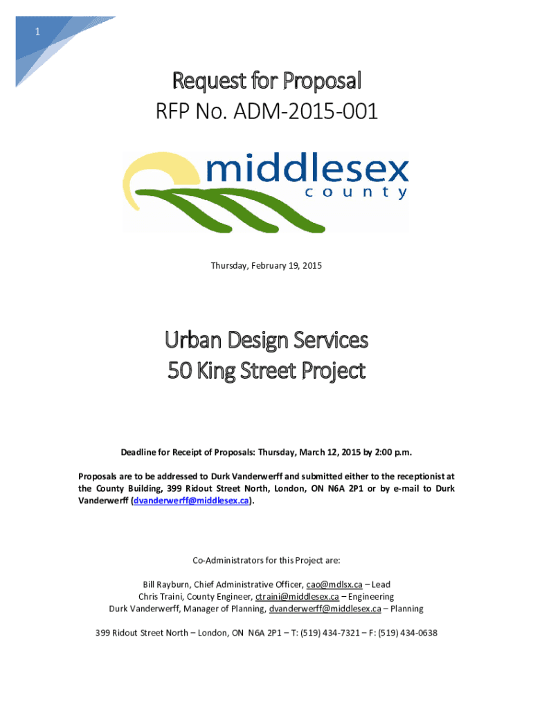1Request for Proposal RFP No. ADM2015001Thursday, February 19, 2015Urban Design Services 50 King Street Project Deadline for Receipt of Proposals: Thursday, March 12, 2015, by 2:00 p.m. Proposals