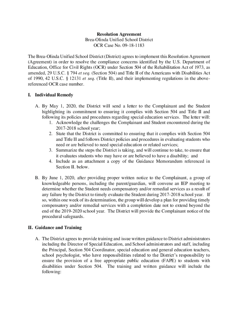 Get the free Brea-Olinda Unified School District (PDF). Resolution Agreement - www2 ed