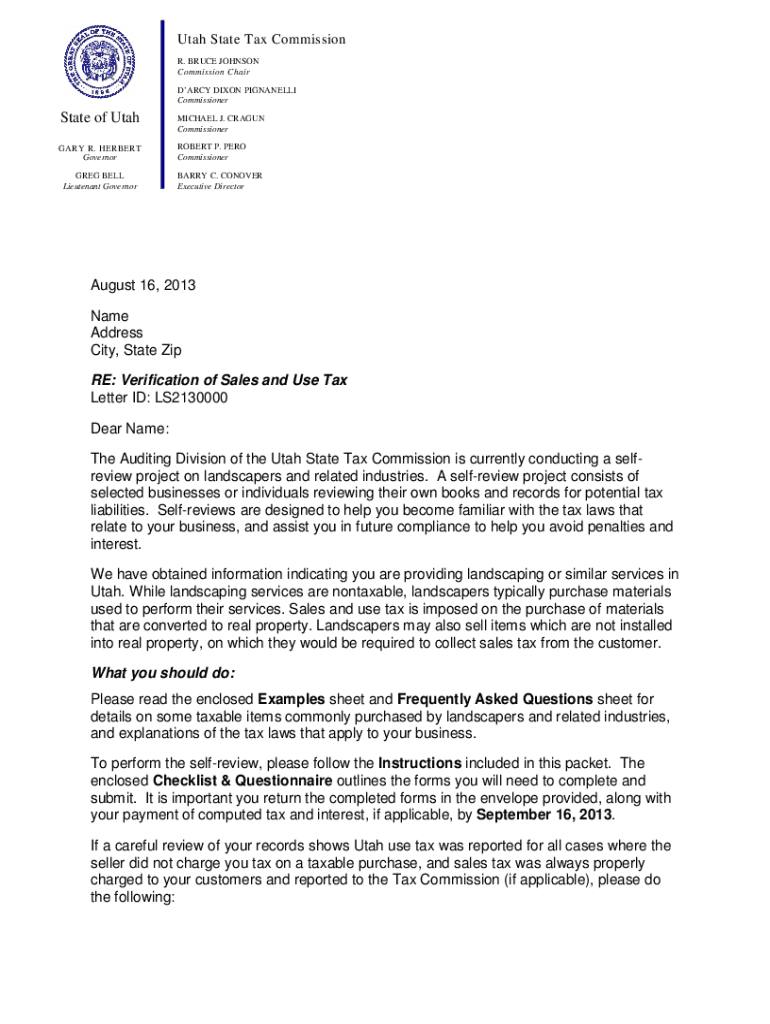 Get the free Self ReviewLandscapers - Utah State Tax Commission - tax utah