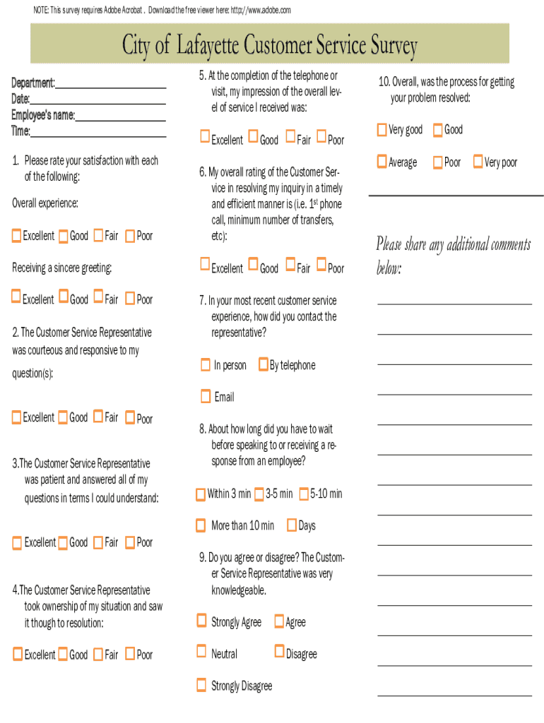 NOTE: This survey requires Adobe Acrobat. Download the free viewer here: http://www.adobe.comCity of Lafayette Customer Service Survey