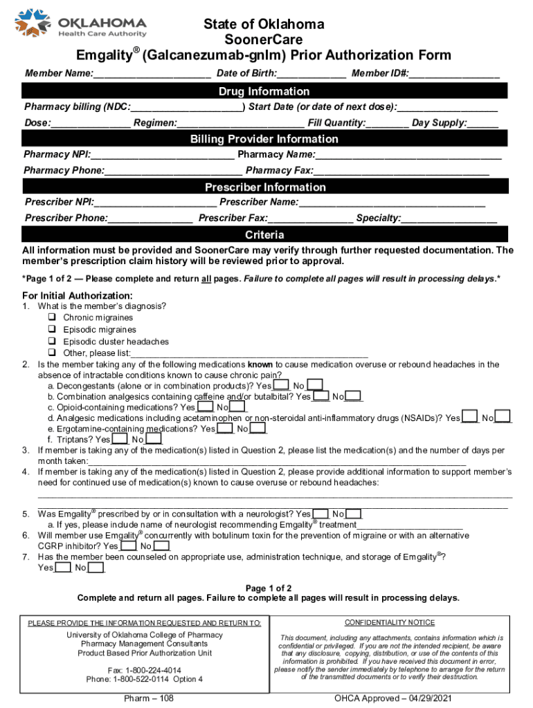 Equality (Galcanezumabgnlm) Prior Authorization Form