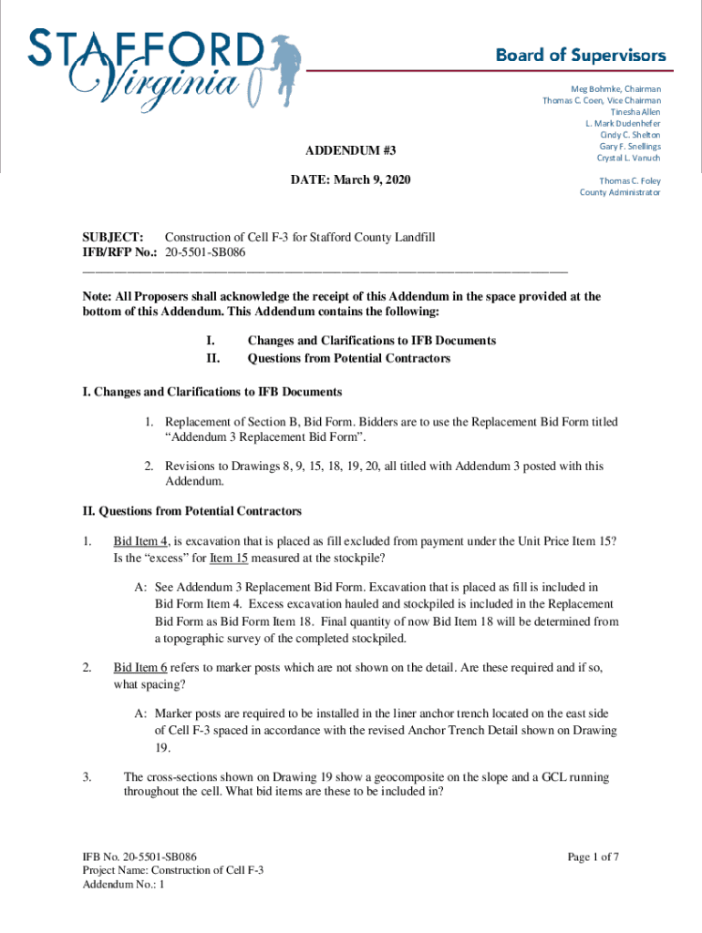 ADDENDUM #3Meg Bouaké, Chairman Thomas C. Coin, Vice Chairman Tines ha Allen L. Mark Dudenhefer Cindy C. Shelton Gary F. Spellings Crystal L. Launch Thomas C. Foley County AdministratorDATE: March