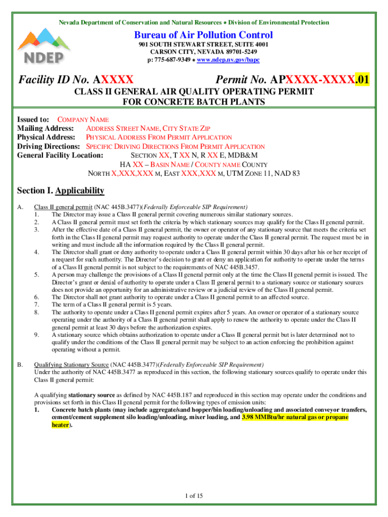Nevada Department of Conservation and Natural Resources Division of Environmental ProtectionBureau of Air Pollution Control 901 SOUTH STEWART STREET, SUITE 4001 CARSON CITY, NEVADA 897015249 p: 7756879349