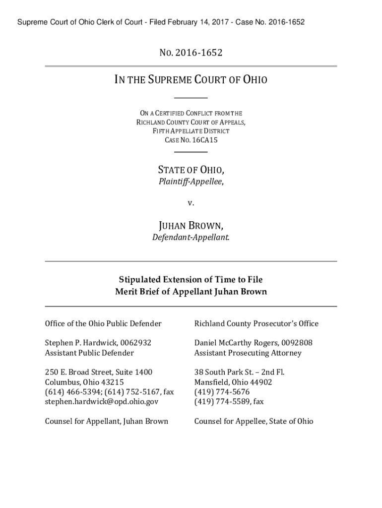 Get the free NO. 2016-1652 IN THE SUPREME COURT OF OHIO